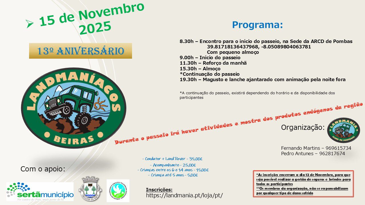 É já no dia 15 de novembro 2025 (sábado) que vamos celebrar os 13 anos do núcleo Landmaniacos das Beiras.